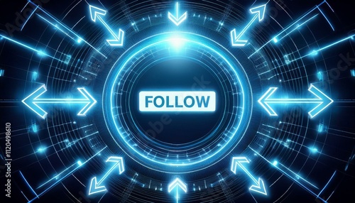 Obraz premium 중앙의 팔로우 버튼이 디지털 화살표들로 강조된 모습