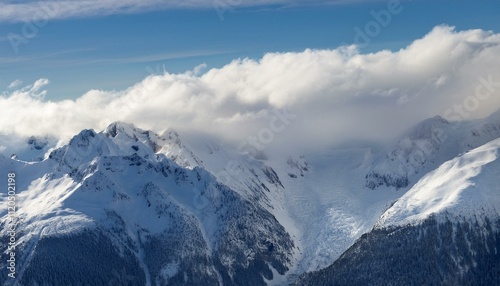 Obraz premium 산봉우리 위로 하얀 눈과 함께 흐릿하게 드리운 구름