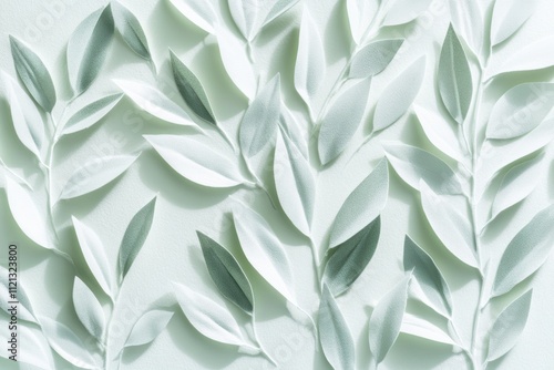 © pham, Obraz premium 自然の美しさが感じられる柔らかな葉のパターンと緑のトーンの背景