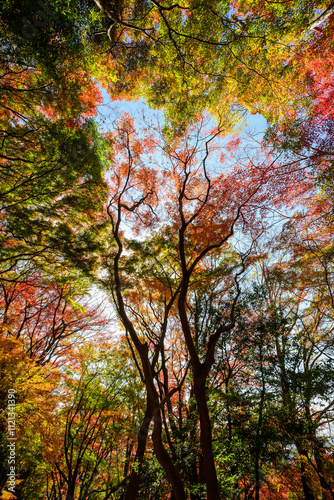 © 宮岸孝守, Fototapeta premium 赤黄色に色づく木々 神戸市の高台,保久良神社で撮影