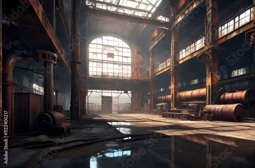 Fototapeta premium ゲーム背景 利用されなくなって機能停止した廃工場中