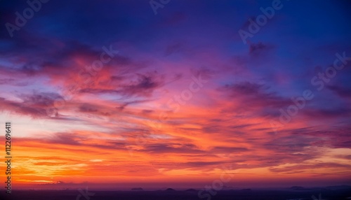 Obraz premium 夕暮れ時の空のような色の変化が、温かく穏やかな印象を与えるグラデーション。オレンジ、ピンク、紫、深い青が見事に調和して広がる。