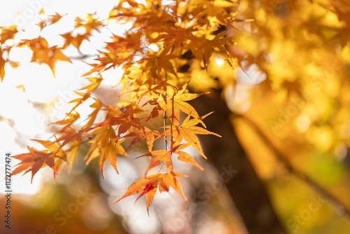 © rai, Obraz premium 黄色に色づく美しいモミジの葉