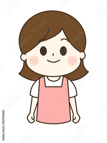© coni-, Obraz premium エプロンを着た笑顔の女性のゆるかわイラスト