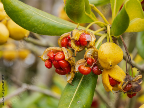 Obraz premium トベラの黄色い実・赤い種子06
