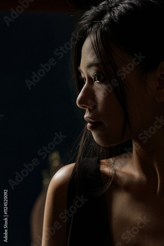 © Hidden Stitch, Fototapeta premium 黒いドレスを着た若い女性の雰囲気のあるポートレート