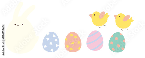 Obraz premium イースター(うさぎ、たまご、小鳥)