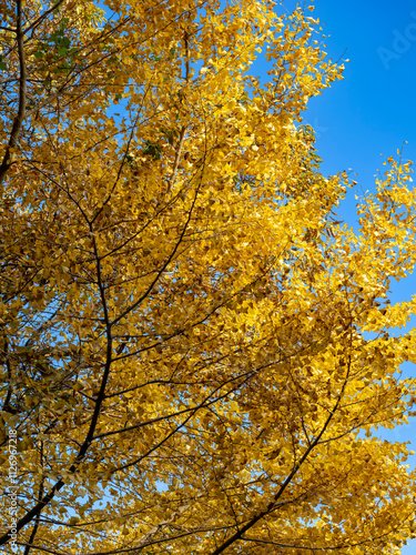© かめです, Fototapeta premium 黄葉と青空