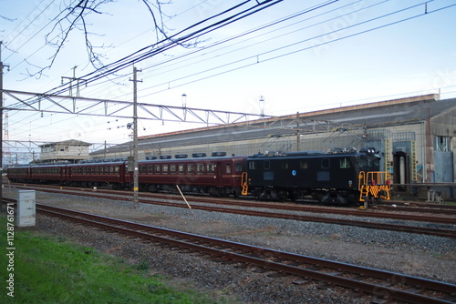Obraz premium 朝焼けの空を背に仕事を終えて車両基地で入れ替え中の急行「三峰号」_2023/11/11撮影