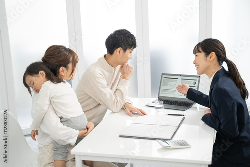 © rrice, Fototapeta premium 家庭訪問して商品サービスの説明をするビジネスウーマン