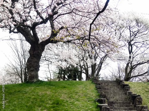 Obraz premium サクラと階段と芝生