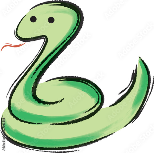 Fototapeta premium シンプルでかわいい水彩風のヘビのイラスト