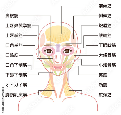Fototapeta premium 顔の筋肉の仕組み 美容 表情筋
