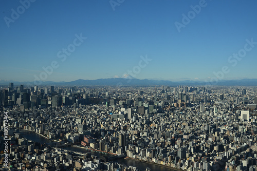 Obraz premium 富士山と隅田川、東京スカイツリー天望デッキより