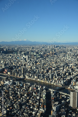Obraz premium 富士山と隅田川、東京スカイツリー天望デッキより