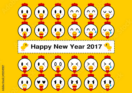 Obraz premium 2017年酉年の年賀状イラスト: ニワトリの顔アイコン