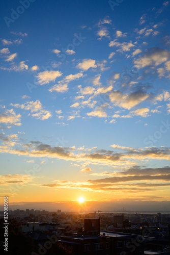© Takamori Miyagishi , Fototapeta premium 都市の夜明け。神戸岡本の高台より市街地をのぞむ