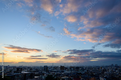 © Takamori Miyagishi , Fototapeta premium 都市の夜明け。神戸岡本の高台より市街地をのぞむ