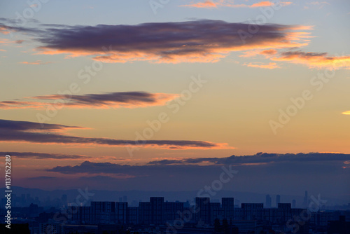 © Takamori Miyagishi , Fototapeta premium 都市の夜明け。神戸岡本の高台より市街地をのぞむ