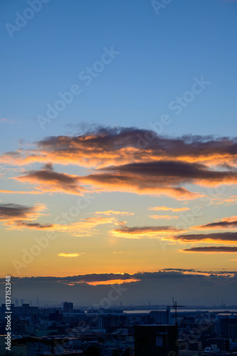 © Takamori Miyagishi , Fototapeta premium 都市の夜明け。神戸岡本の高台より市街地をのぞむ