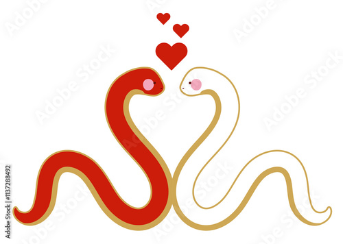 Obraz premium 向かい合う紅白の蛇(ハート)