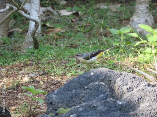 Obraz premium 草の生えた地面を歩くキセキレイ