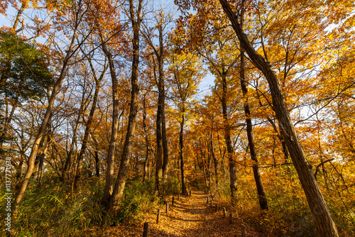 © cqtakashi, Obraz premium 紅葉に染まる浅間山の遊歩道