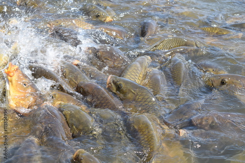 Obraz premium 池で餌付け中の鯉