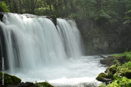 © Pentaro, Obraz premium 青森県・夏の奥入瀬渓流 銚子大滝で涼を求める