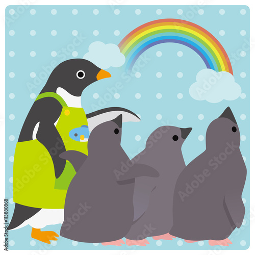 © suzumeclub, Naklejka premium アデリーペンギン 保育園 虹