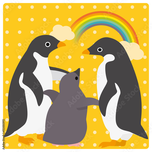 © suzumeclub, Obraz premium アデリーペンギン 家族 虹