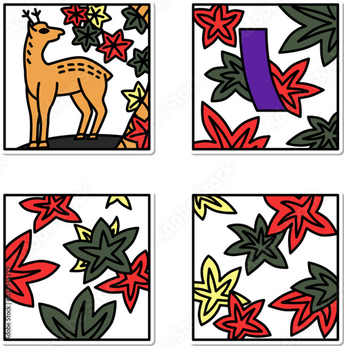© nissat, Obraz premium 10月のステッカーシンプル正方形花札アイコンセット