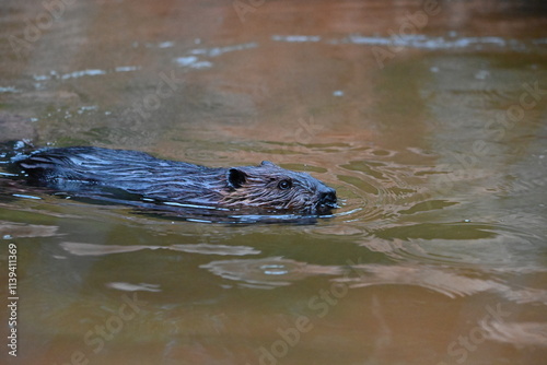 Obraz premium さっそうと泳ぐアメリカンビーバー