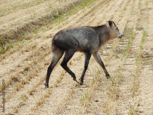 © 晋 宮本, Fototapeta premium 田を歩く二ホンカモシカ