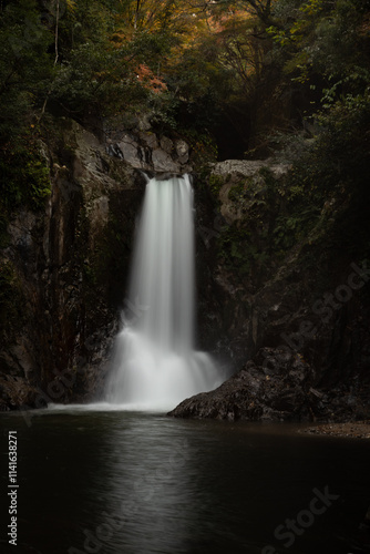 Obraz premium 紅葉する森と美しい滝 愛知県