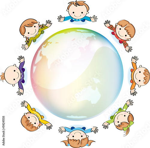 © ニコ, Obraz premium 手を振る子供たちと地球