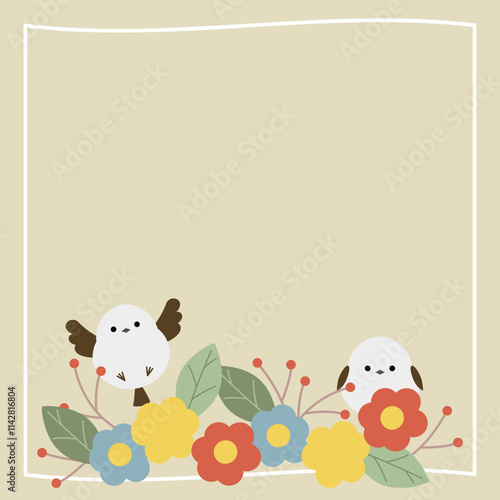 Obraz premium かわいいシマエナガと北欧風の背景