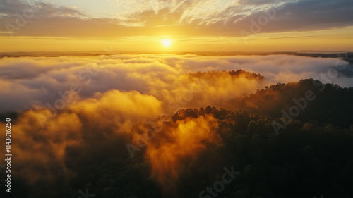 Obraz premium ドローンで捉えた雲海と森林の朝焼け