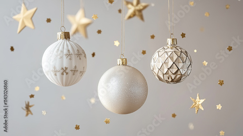 Fototapeta premium ゴールドと白のクリスマスオーナメント