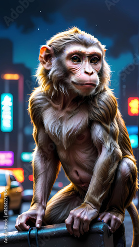 © ユウキAIクリエイター, Obraz premium ネオン街のさる