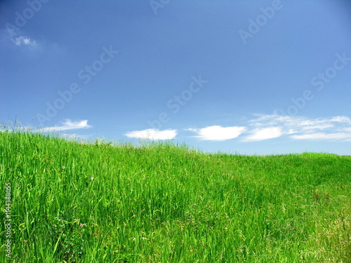 © smtd3, Fototapeta premium 初夏の若草生える江戸川土手風景