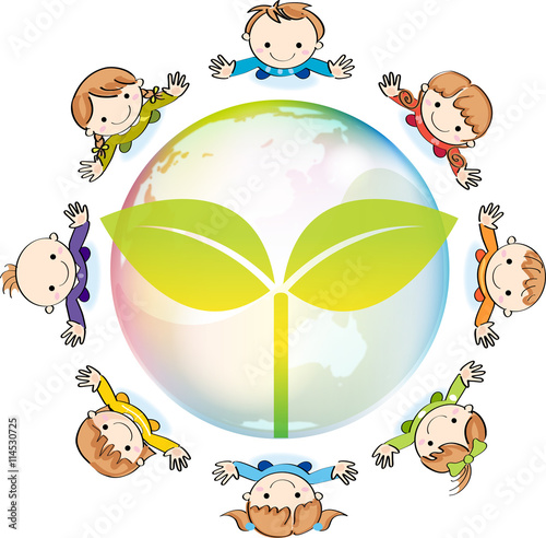 © ニコ, Obraz premium 手を振る子供たちと地球
