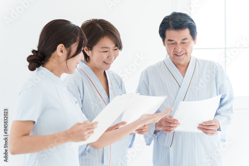 © polkadot, Fototapeta premium 人間ドッグを受ける夫婦と看護師(健康診断・医療・患者)