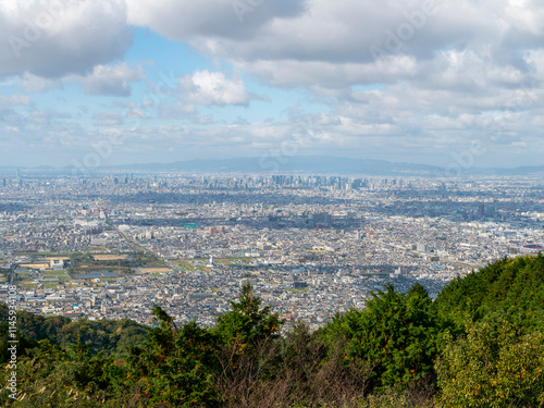 Obraz premium 生駒山系から見る大阪平野の街並み