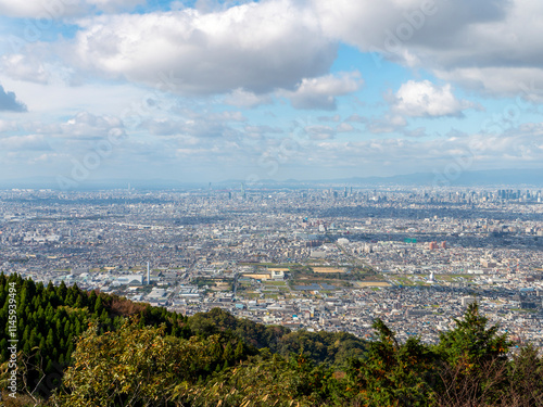 Obraz premium 生駒山系から見る大阪平野の街並み