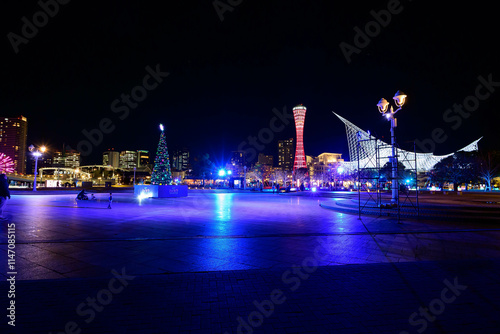 © Takamori Miyagishi , Fototapeta premium みなと町神戸の夜景。冬の夜メリケンパークで撮影