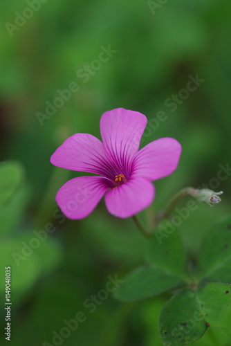© Shinichiro Korenaga, Fototapeta premium 新緑の中にピンクの花を咲かすイモカタバミ