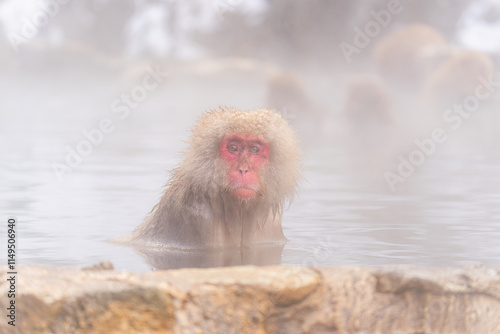 Fototapeta premium 温泉に浸かるニホンザル【長野県・地獄谷野猿公苑】