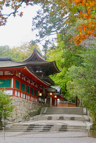 © tk2001, Fototapeta premium 石上神宮・回廊・モミジ(奈良県・天理市)