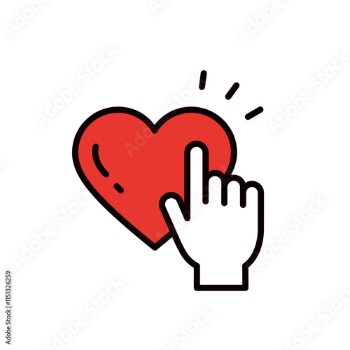 © SAKUTA, Obraz premium ハートを押す手のイラスト_編集可能なラインアイコン
